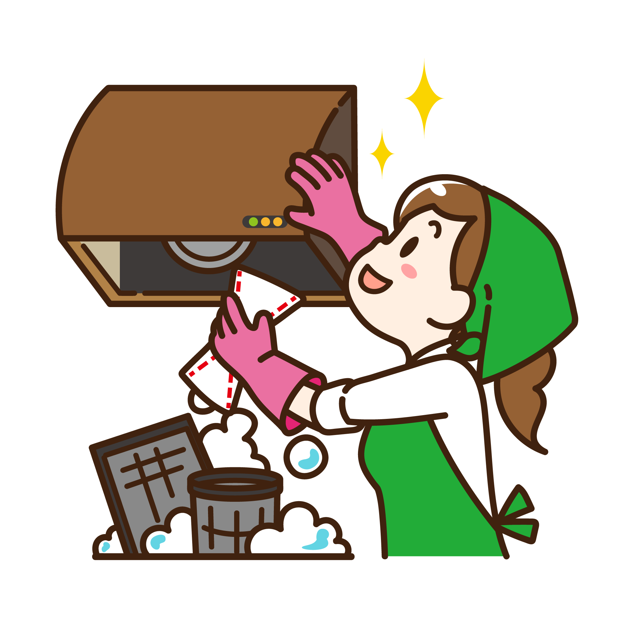 吊戸棚・収納庫の中、および家財移動。魚焼き器・食器洗浄機・生ごみ処理機・ガラス窓・ブラインド・ロールカーテン・タイル素材以外の壁面、屋外のフードは含まれません。